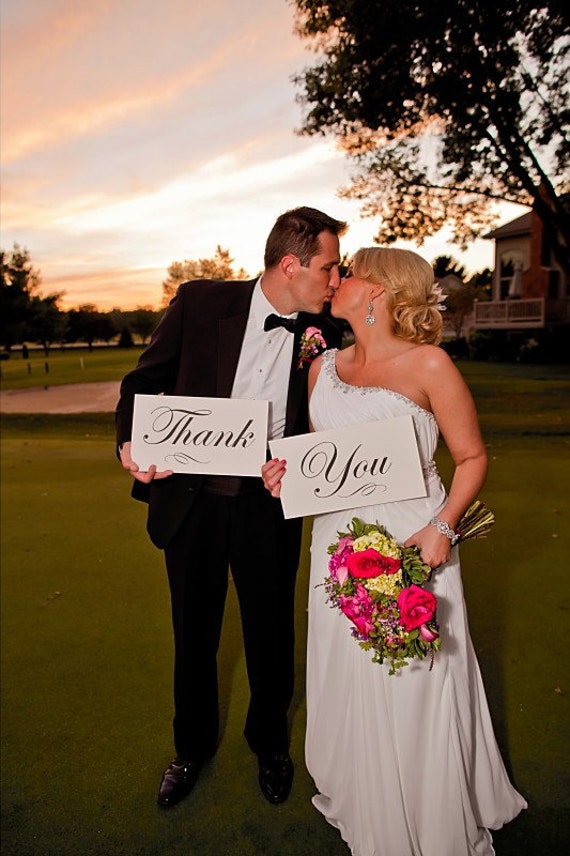 View Wedding Thank You Photo Ideas Images. Two 8x10 photo prop signs that say thank and you. #printed on thick 360 gsm card #single or double sided #free envelopes #personalised with photo **for an extra touch add some string tie or ribbon.